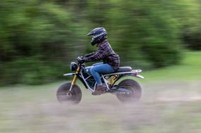 The Grunt’s distinctive low height and oversize tires are designed to make it look like the minibikes of the 1970s and ‘80s. These unique elements of the Grunt are not just for styling, but we believe they help make it easier to ride as compared to other off-road motorcycles on the market. The low seat height and big tires help make the Grunt stable at all speeds on all surfaces. The electric drivetrain has no clutch and no gears, making it easy for almost anyone to ride.