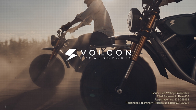 STATEMENT ABOUT FREE WRITING PROSPECTUS This free writing prospectus relates to the proposed initial public offering of common stock of Volcon, Inc., which are being registered on a registration statement on Form S - 1 (File No. 333 - 259468) (the “Registration Statement”). This free writing prospectus should be read together with the preliminary prospectus dated September 10, 2021 included in the Registration Statement (the “Preliminary Prospectus”), which can be accessed through the following link: https://www.sec.gov/Archives/edgar/data/1829794/000168316821004236/volcon_s1.htm We have filed a Registration Statement, including the Preliminary Prospectus, with the SEC with respect to the offering of our securities to which this communication relates. The Registration Statement has not yet become effective. Before you invest, you should read the Preliminary Prospectus (including the risk factors described therein) and, when available, the final prospectus relating to the offering, and the other documents filed with the SEC, for more complete information about us and the offering. You may obtain these documents, including the Preliminary Prospectus, for free by visiting EDGAR on the SEC website at http://www.sec.gov. Alternatively, the company or the underwriter for the offering will arrange to send you the Preliminary Prospectus and, when available, the final prospectus and/or any supplements thereto, if you contact Aegis Capital Corp by e - mail at syndicate@aegiscap.com or by telephone at (212) 813 - 1010. 3