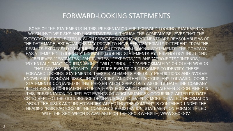 2 FORWARD - LOOKING STATEMENTS SOME OF THE STATEMENTS IN THIS PRESENTATION ARE FORWARD - LOOKING STATEMENTS, WHICH INVOLVE RISKS AND UNCERTAINTIES. ALTHOUGH THE COMPANY BELIEVES THAT THE EXPECTATIONS REFLECTED IN SUCH FORWARD - LOOKING STATEMENTS ARE REASONABLE AS OF THE DATE MADE, EXPECTATIONS MAY PROVE TO HAVE BEEN MATERIALLY DIFFERENT FROM THE RESULTS EXPRESSED OR IMPLIED BY SUCH FORWARD - LOOKING STATEMENTS. THE COMPANY HAS ATTEMPTED TO IDENTIFY FORWARD - LOOKING STATEMENTS BY TERMINOLOGY INCLUDING ''BELIEVES,'' ''ESTIMATES,'' ''ANTICIPATES,'' ''EXPECTS,'' ''PLANS,'' ''PROJECTS,'' ''INTENDS,'' ''POTENTIAL,'' ''MAY,'' ''COULD,'' ''MIGHT,'' ''WILL,'' ''SHOULD,'' ''APPROXIMATELY'' OR OTHER WORDS THAT CONVEY UNCERTAINTY OF FUTURE EVENTS OR OUTCOMES TO IDENTIFY THESE FORWARD - LOOKING STATEMENTS. THESE STATEMENTS ARE ONLY PREDICTIONS AND INVOLVE KNOWN AND UNKNOWN RISKS, UNCERTAINTIES, AND OTHER FACTORS. ANY FORWARD - LOOKING STATEMENTS CONTAINED IN THIS PRESENTATION SPEAK ONLY AS OF ITS DATE. THE COMPANY UNDERTAKES NO OBLIGATION TO UPDATE ANY FORWARD - LOOKING STATEMENTS CONTAINED IN THIS PRESENTATION TO REFLECT EVENTS OR CIRCUMSTANCES OCCURRING AFTER ITS DATE OR TO REFLECT THE OCCURRENCE OF UNANTICIPATED EVENTS. MORE DETAILED INFORMATION ABOUT THE RISKS AND UNCERTAINTIES AFFECTING THE COMPANY IS CONTAINED UNDER THE HEADING “RISK FACTORS” IN THE COMPANY’S REGISTRATION STATEMENT ON FORM S - 1 FILED WITH THE SEC, WHICH IS AVAILABLE ON THE SEC’S WEBSITE, WWW.SEC.GOV.