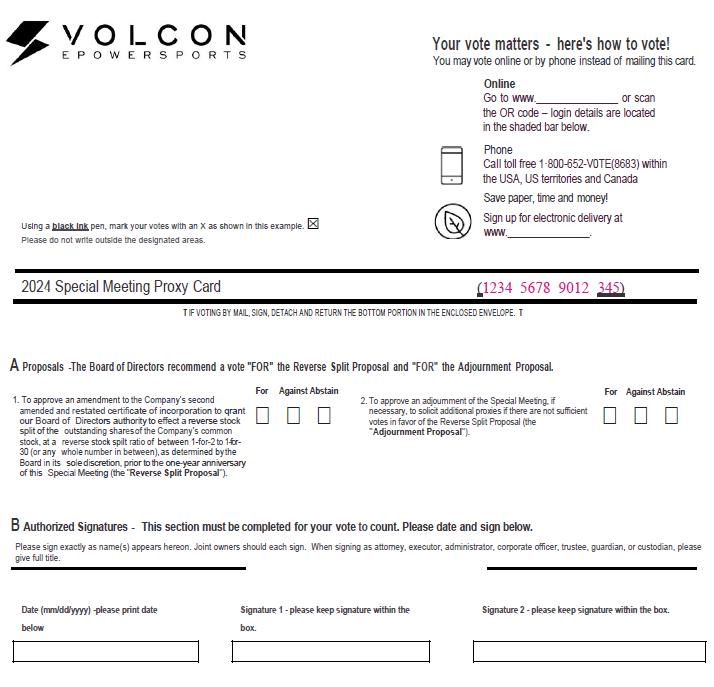 Important Notice Regarding the Availability of Proxy Materials for the Special Meeting to Be Held on _________, 2024. The Proxy Statement and form of Proxy are available on the Internet at www.edocumentview.com/VLCN2 and on our corporate website at www.volcon.com under “Investors—SEC Filings.”